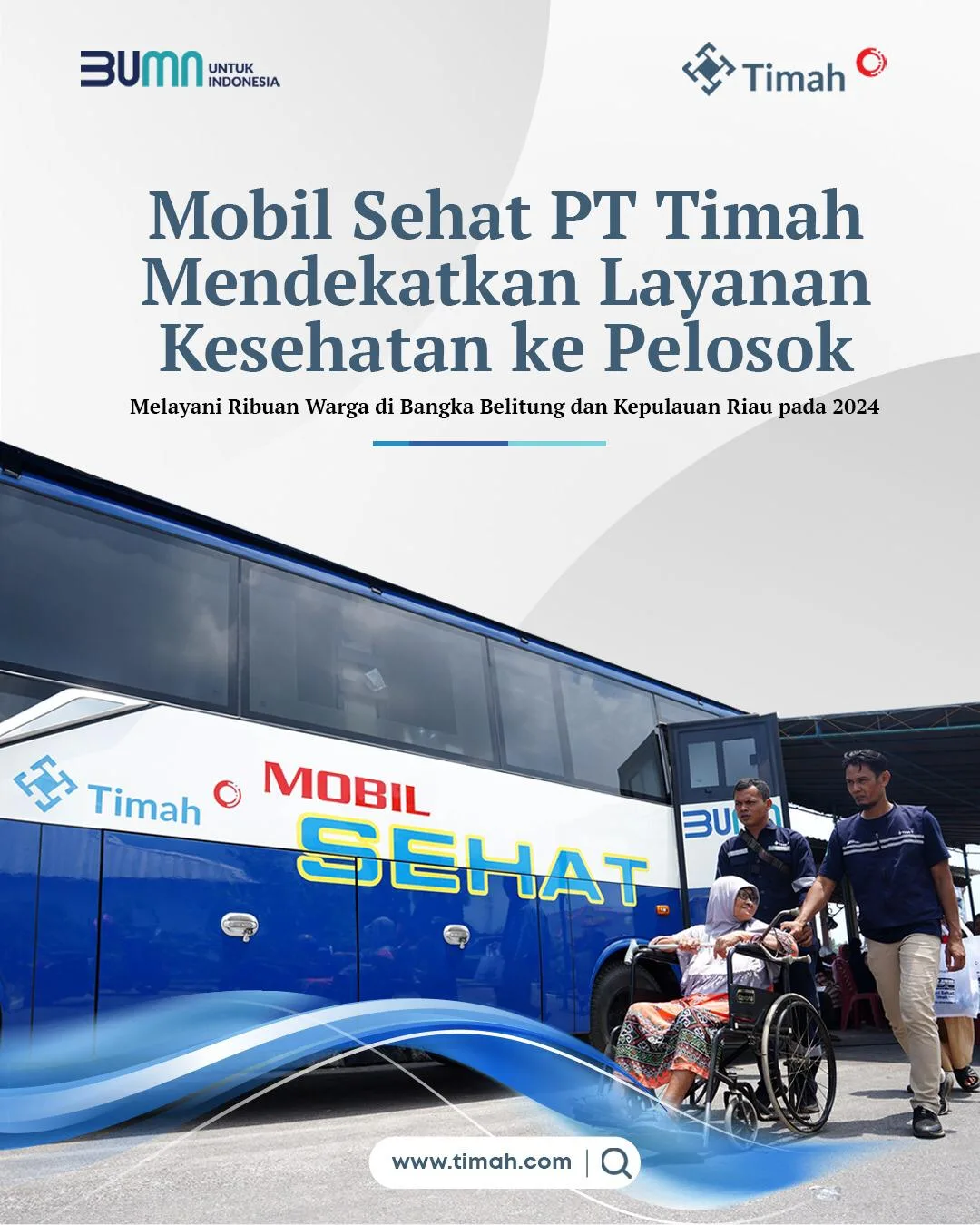 Pada tahun 2024 lalu, Mobil Sehat PT Timah telah melayani 5.727 masyarakat di 52 titik yang tersebar di Provinsi Kepulauan Bangka Belitung dan Provinsi Kepulauan Riau.