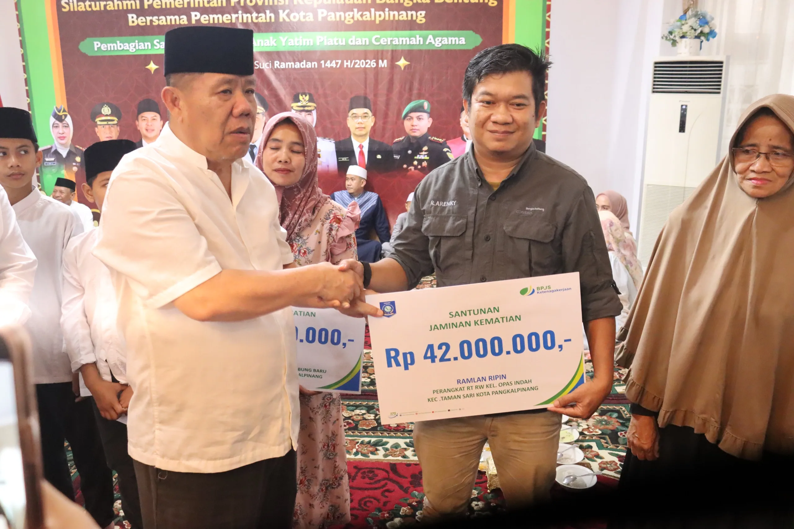 Acara berlangsung khidmat dan diisi dengan penyerahan santunan secara simbolis kepada anak yatim piatu serta ceramah agama tentang makna Ramadan.