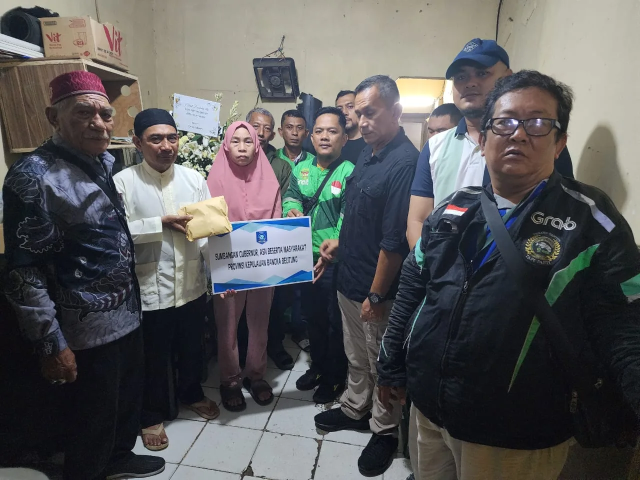 “Maaf Pak Gubernur Hidayat Arsani tidak bisa datang karena sesuatu hal masih memantau situasi keamanan bersama Forkopimda di Babel. Ini ada Ajudan Pak Gubernur, Bang Renal, kami rombongan bersama tiga perwakilan ojol yang ada di Babel berbela sungkawa dan kami membawa amanah (donasi-red), semoga bermanfaat,” kata Evan.