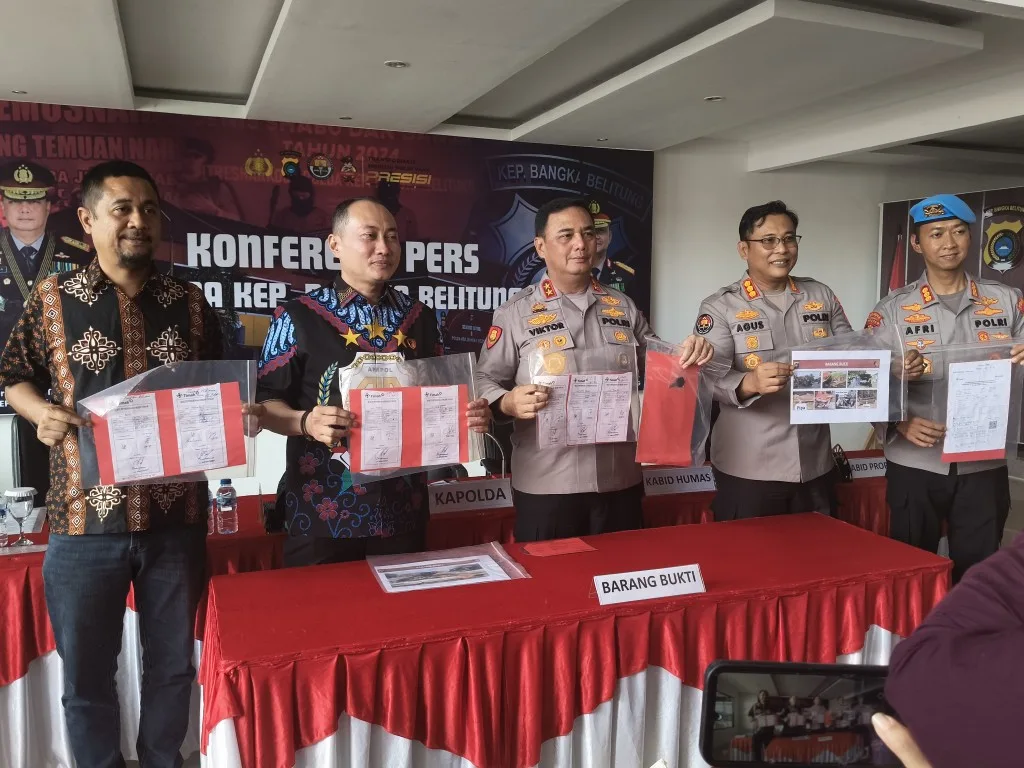 Polisi menyita barang bukti berupa satu unit excavator, 275 kilogram pasir timah basah, peralatan tambang, serta dokumen pengiriman. Para tersangka dijerat UU Minerba dan pasal kelalaian yang menyebabkan kematian. (LN/007)