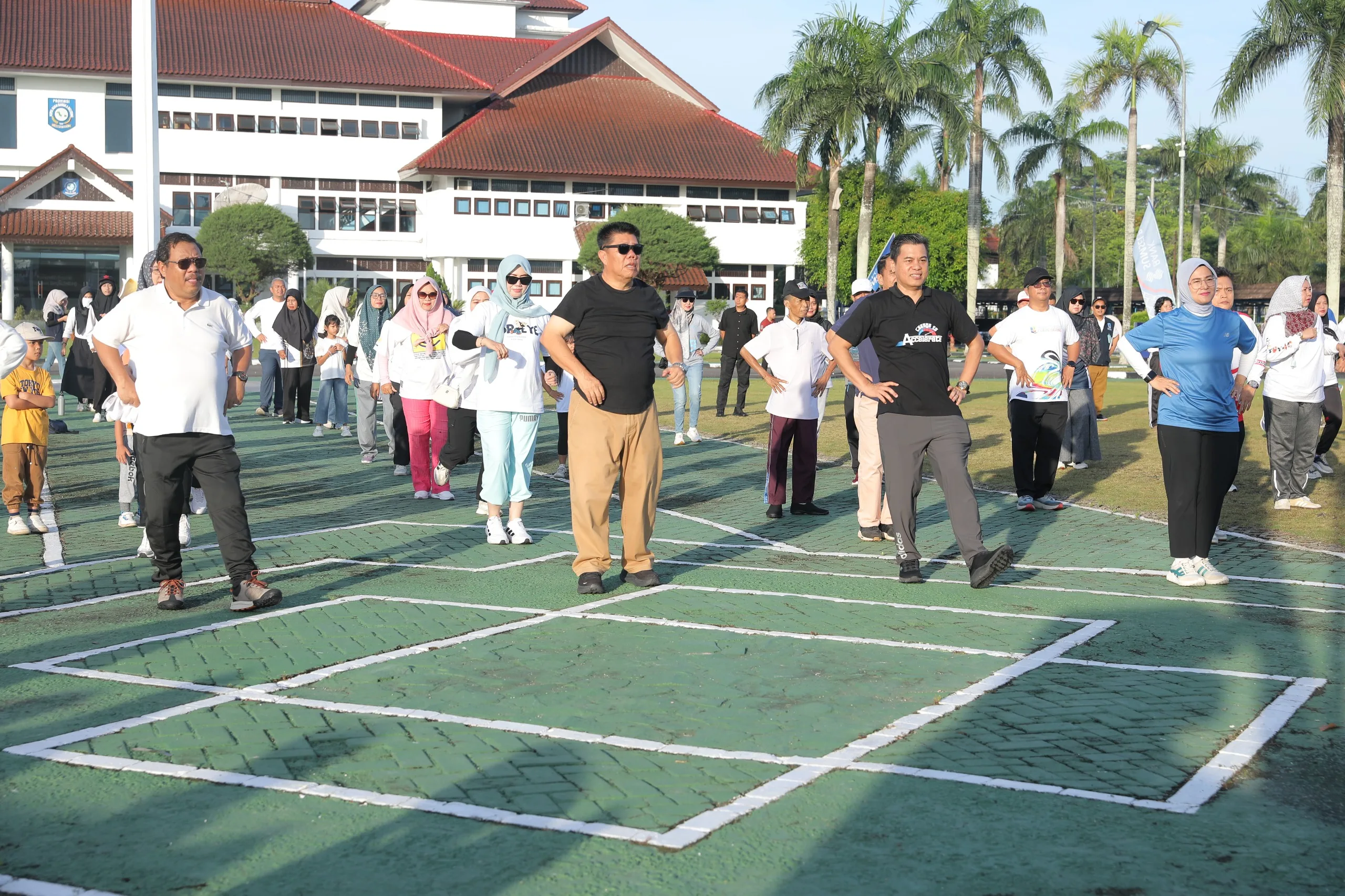 Kegiatan ini turut dihadiri Gubernur Kepulauan Bangka Belitung, Hidayat Arsani, yang juga mengikuti senam sehat bersama masyarakat sebelum pengundian berlangsung.