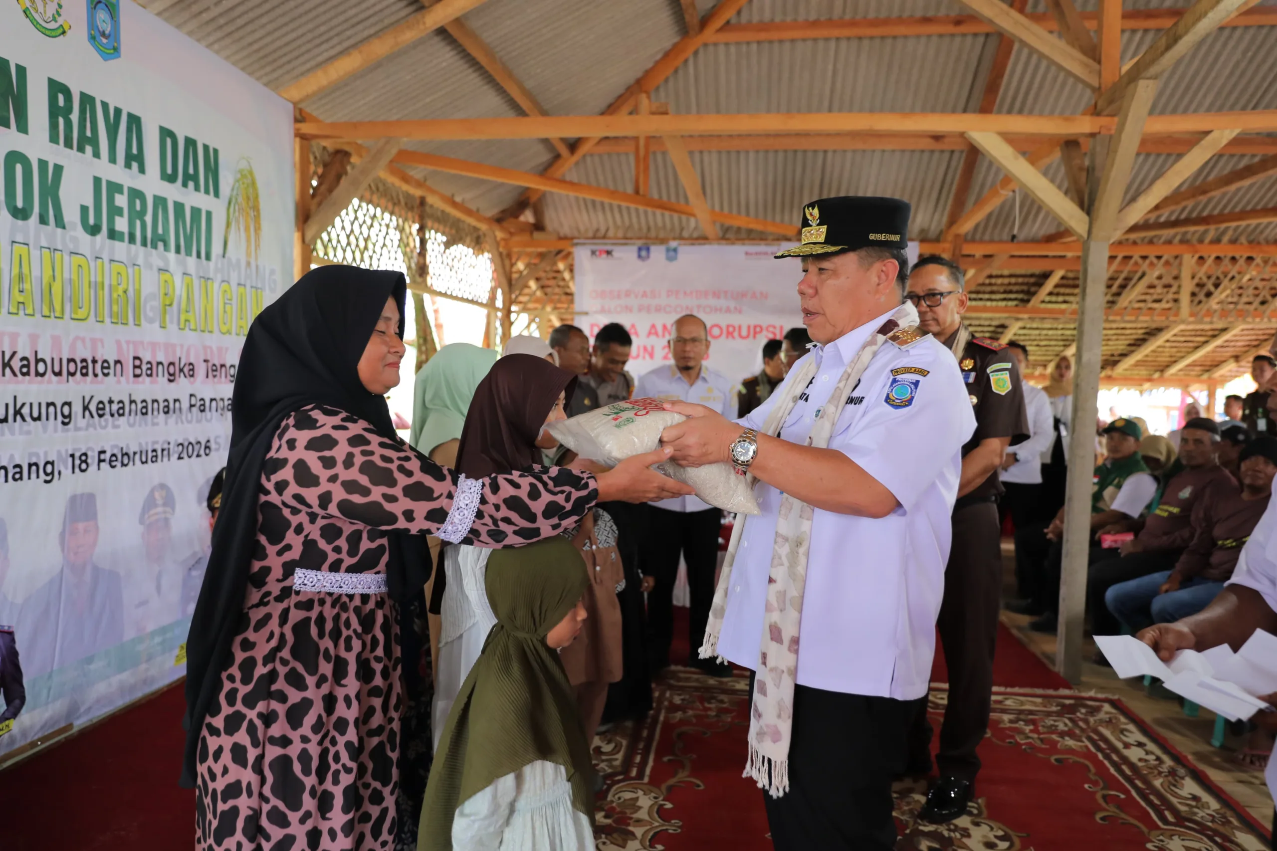 LOPANNEWS, BANGKA TENGAH — Komitmen memperkuat ketahanan pangan daerah kembali ditegaskan Gubernur Kepulauan Bangka Belitung (Babel), Hidayat Arsani, saat menghadiri Panen Raya dan Murok Jerami Program Jaksa Mandiri Pangan yang diinisiasi Kejaksaan Tinggi Bangka Belitung di Saung Desa Namang, Rabu (18/2/2026).