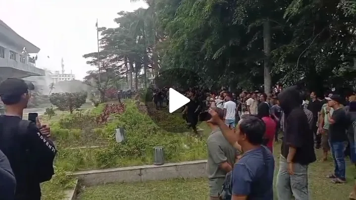 Dalam video yang beredar, terdengar suara letusan gas air mata dari arah aparat kepolisian.