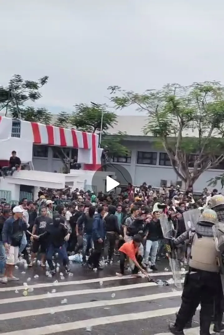 Berdasarkan hasil rekaman video yang beredar di sejumlah grup WhatsApp serta media sosial (medsos-red), kericuhan pecah setelah massa melempari aparat keamanan dengan botol air mineral dan berusaha menerobos barikade.